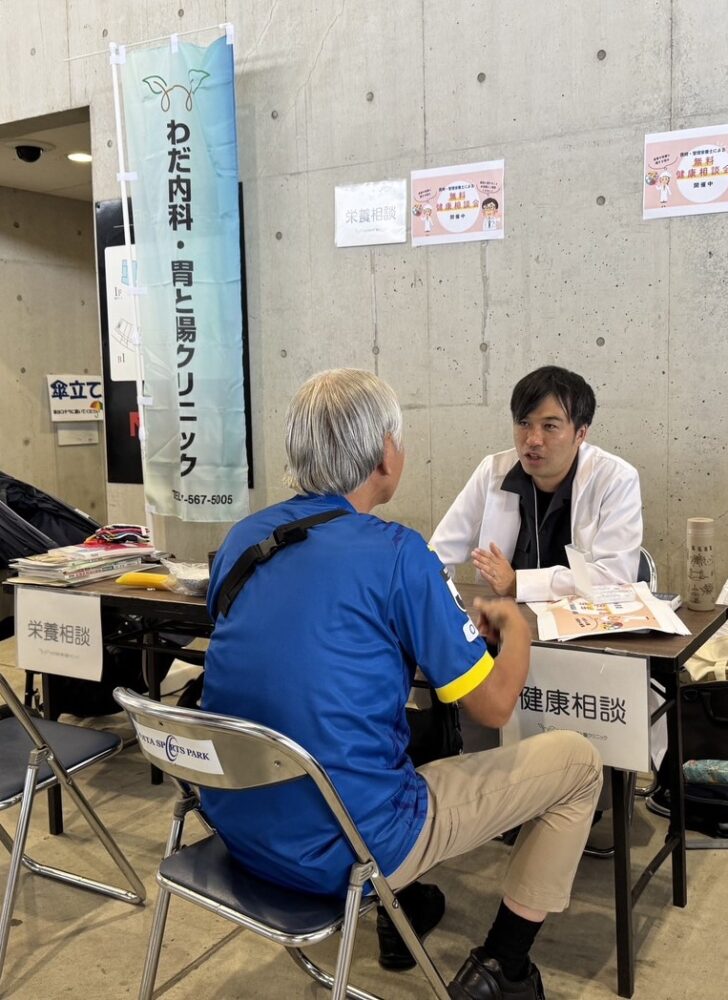 今年も当院の管理栄養士が参加し、健康相談に加えて栄養相談も実施しました。私の専門である胃腸・肝臓に関するご相談のほか、「尿酸値や血圧が高いけどどうすれば?」「体重が増えなくて困っている」「自炊はあまりしないので、コンビニやスーパーでの食事選びのコツを知りたい」など、幅広いお悩みを伺いました。